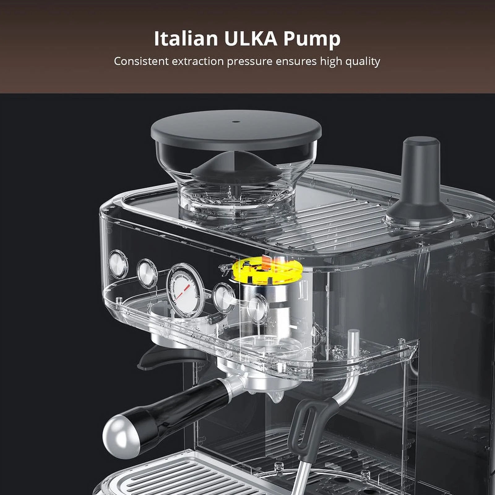 Removable Water Tank: The coffee machine comes with an independent water tank which is removable so that it is easy to clean and refill. Also, the water level is visible