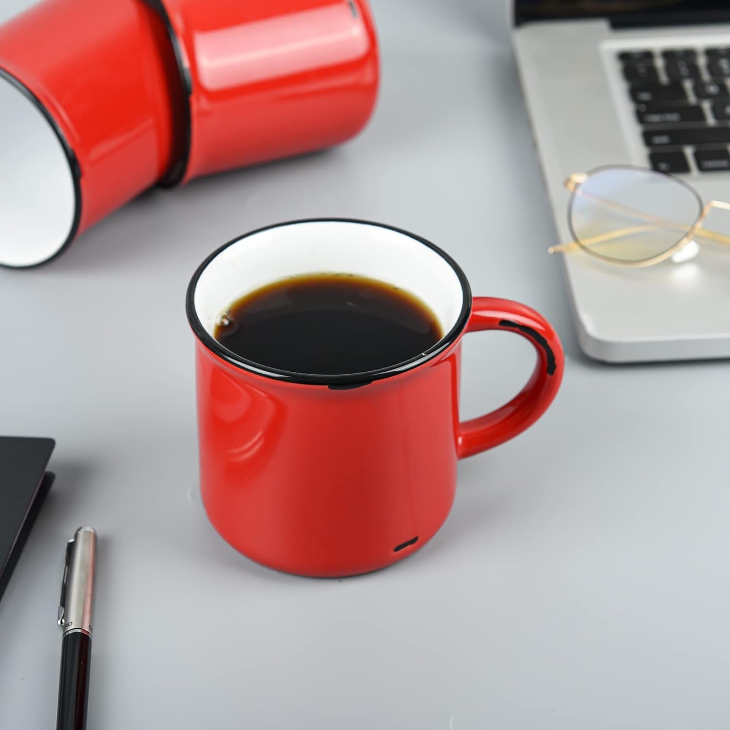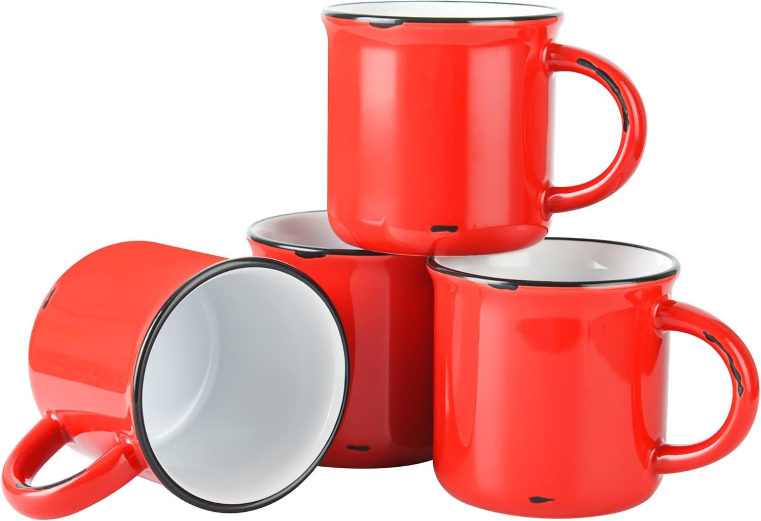Campfire Cuppa Crew: 4 Retro Red Mugs for Sippin’ and Spillin’!