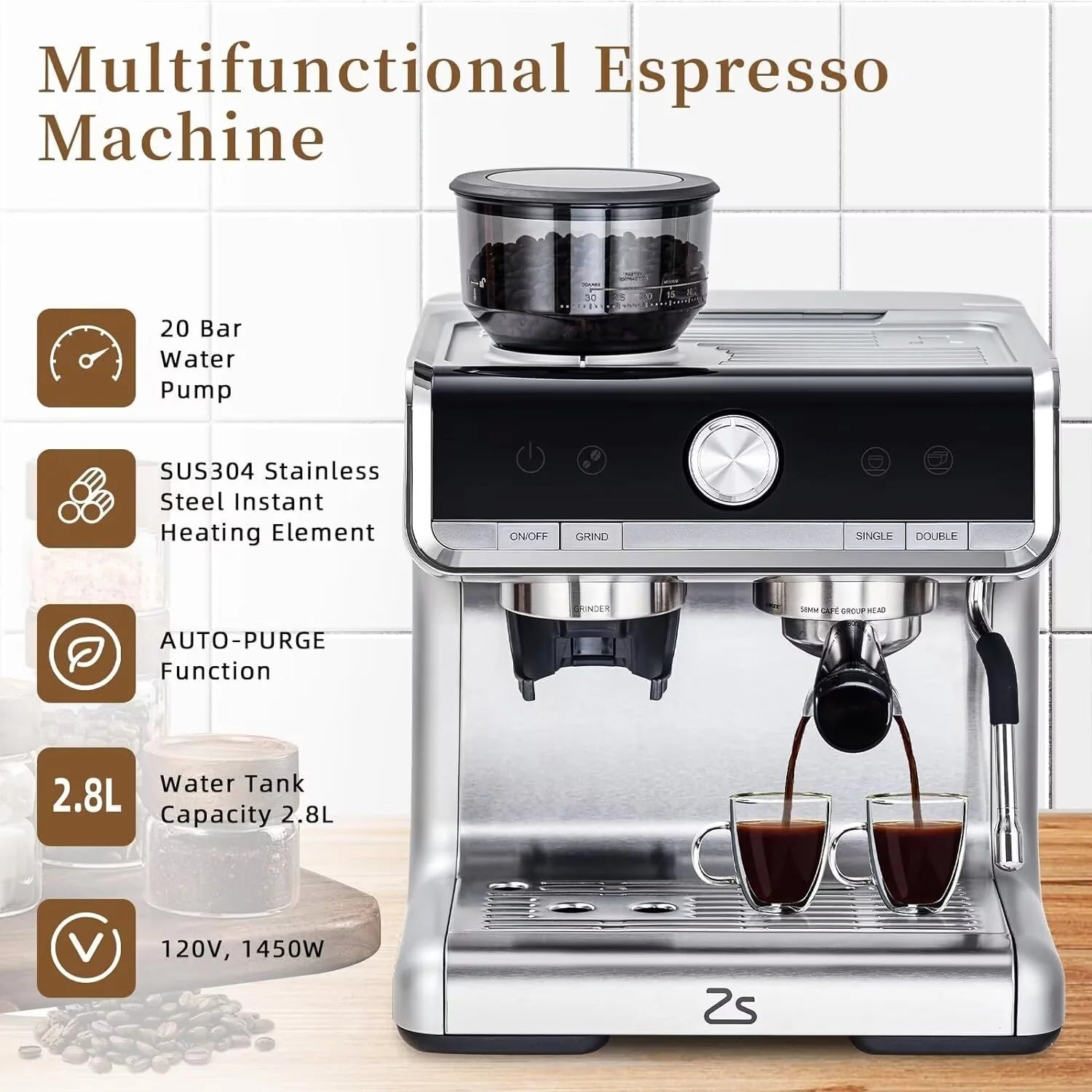 Strelect Espresso Machine with Grinder – your 20-bar semi-automatic espresso wizard that brings café-quality brews right to your kitchen or office. This all-in-one marvel combines a powerful grinder and a milk frother wand, letting you craft rich espressos, creamy lattes, and frothy cappuccinos with ease. Perfect for coffee lovers who want to add a little magic to their daily routine, it’s designed to deliver barista-style drinks that brighten every morning and energize every afternoon. Brew one cup of magic at a time and enjoy the delicious adventure!