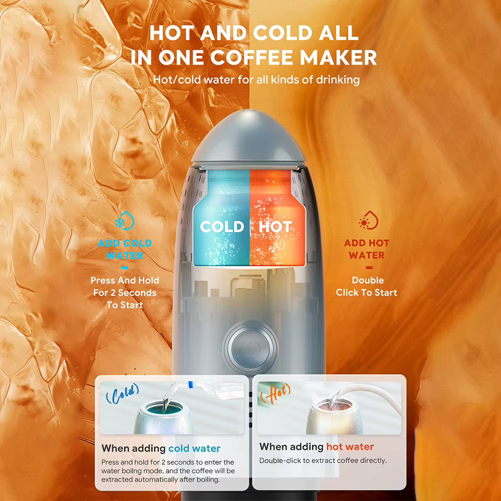2.Lightweight & Portable: With its compact body and rechargeable battery, this coffee brewing machine allows you to enjoy hot beverages anywhere without the need for a power outlet, ideal for travel or office use.