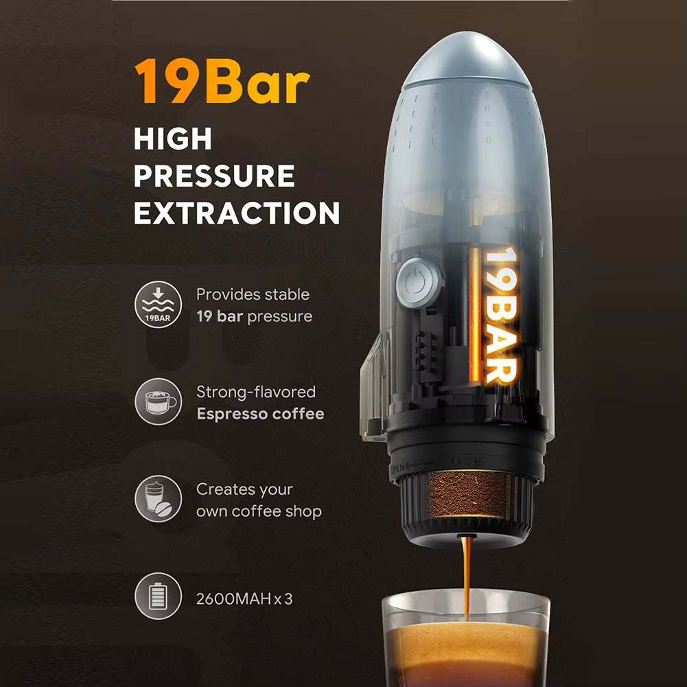 1.Innovative Rocket Design: Drawing inspiration from aerospace technology, our portable coffee maker boasts a unique rocket shape that captures the eye and exudes a futuristic vibe, perfect for fashion-forward individuals.
