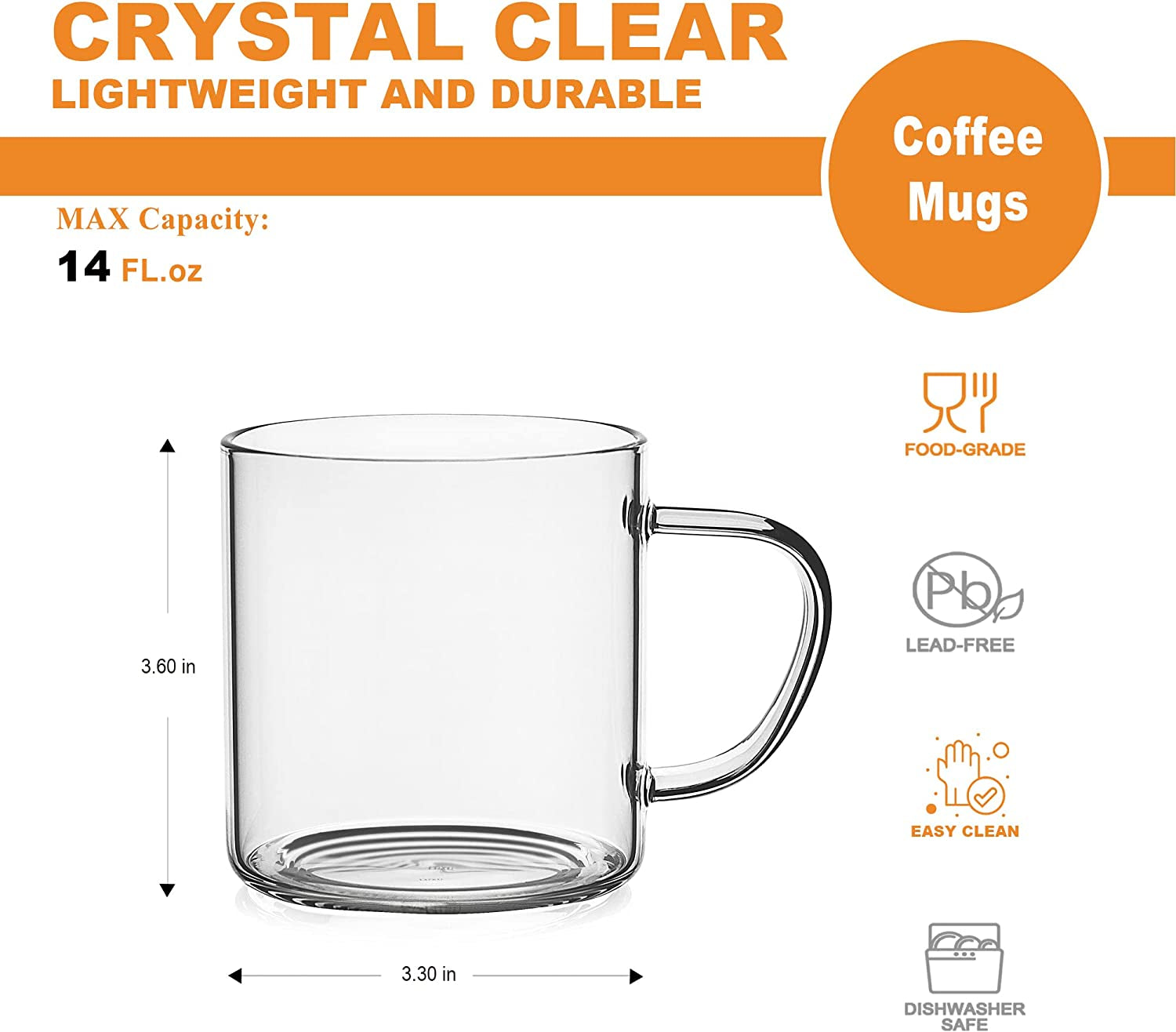 Hand Blown & Seamless Design, 14 Oz Clear Coffee Cups-Heat Resistant and Explosion-Proof, Lightweight Tea Mugs with anti Scald Handle... Read more