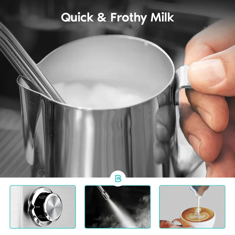 - ☕ FOAM LIKE A PRO: The powerful steam wand whips up creamy microfoam milk, perfect for latte art or adding that extra smooth touch to your drinks.
