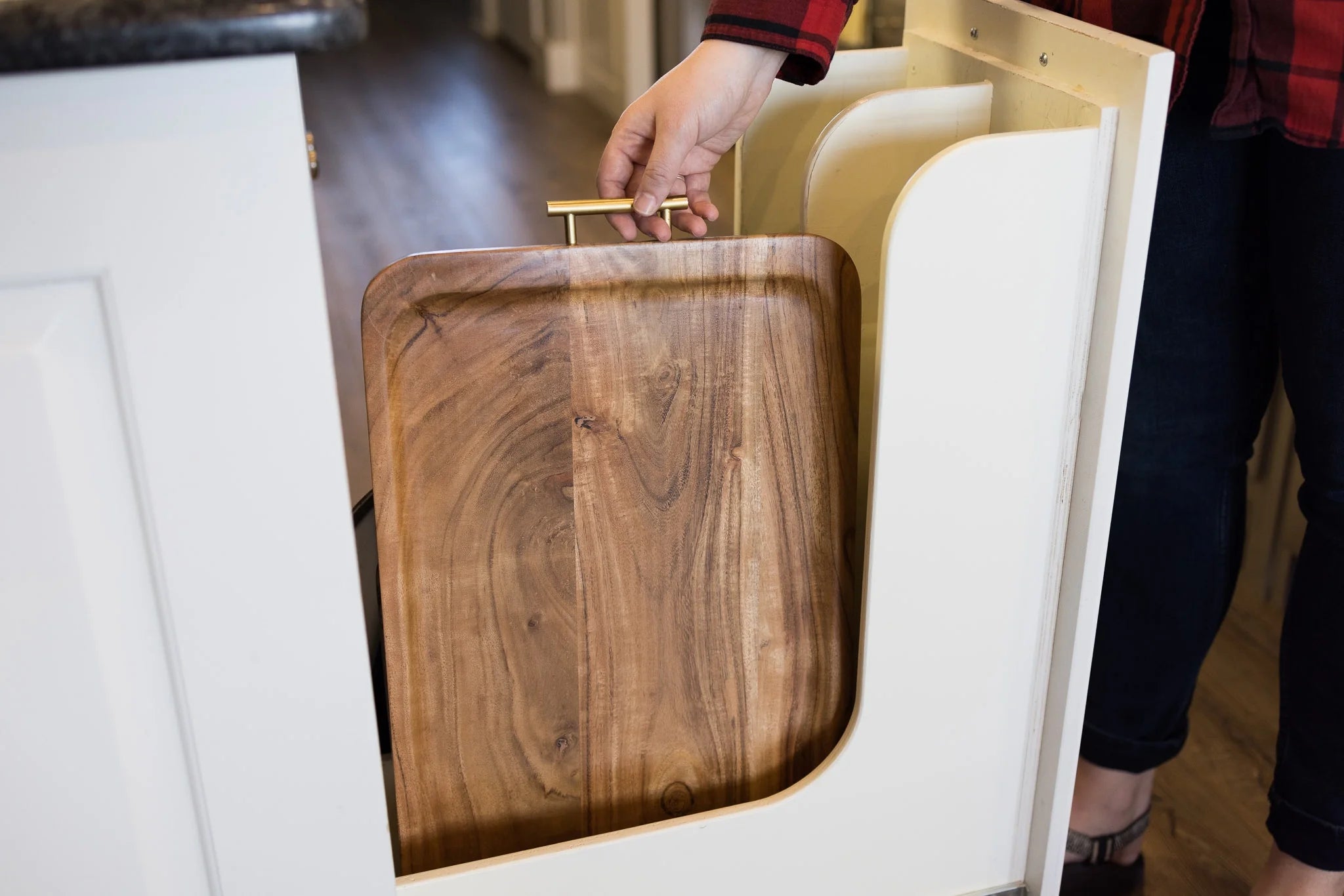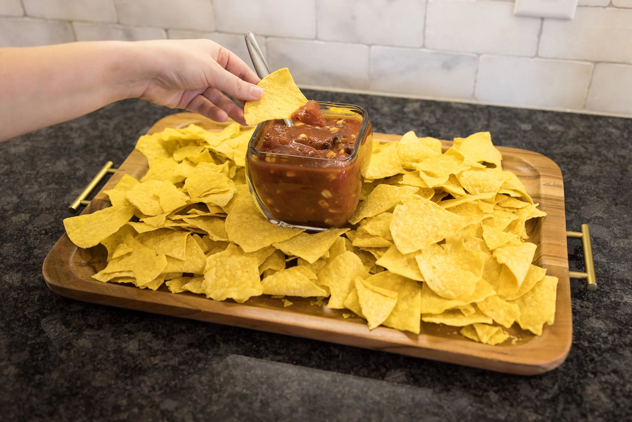 Enhance your serving experience with the Better Homes & Gardens Acacia Wood Tray with Gold Color Handles. Crafted from durable acacia wood, this tray is designed for everyday use and offers excellent moisture resistance. Whether you're serving breakfast in bed, snacks for movie nights, drinks, or a variety of desserts, this tray is versatile and reliable. The tray features elegant gold color handles that add a touch of sophistication and make it easy to carry. Its single tray design allows you to elevate any room's decor, whether placed in the bedroom, living room, or as a stylish addition to your coffee table. It provides a perfect spot for books, candles, or your remote between uses, combining functionality with aesthetic appeal. With its blend of natural acacia wood and striking gold metal handles, the Better Homes & Gardens Acacia Wood Tray with Gold Color Handles is sure to elevate your home's ambiance, adding a contemporary and chic touch wherever it's placed.