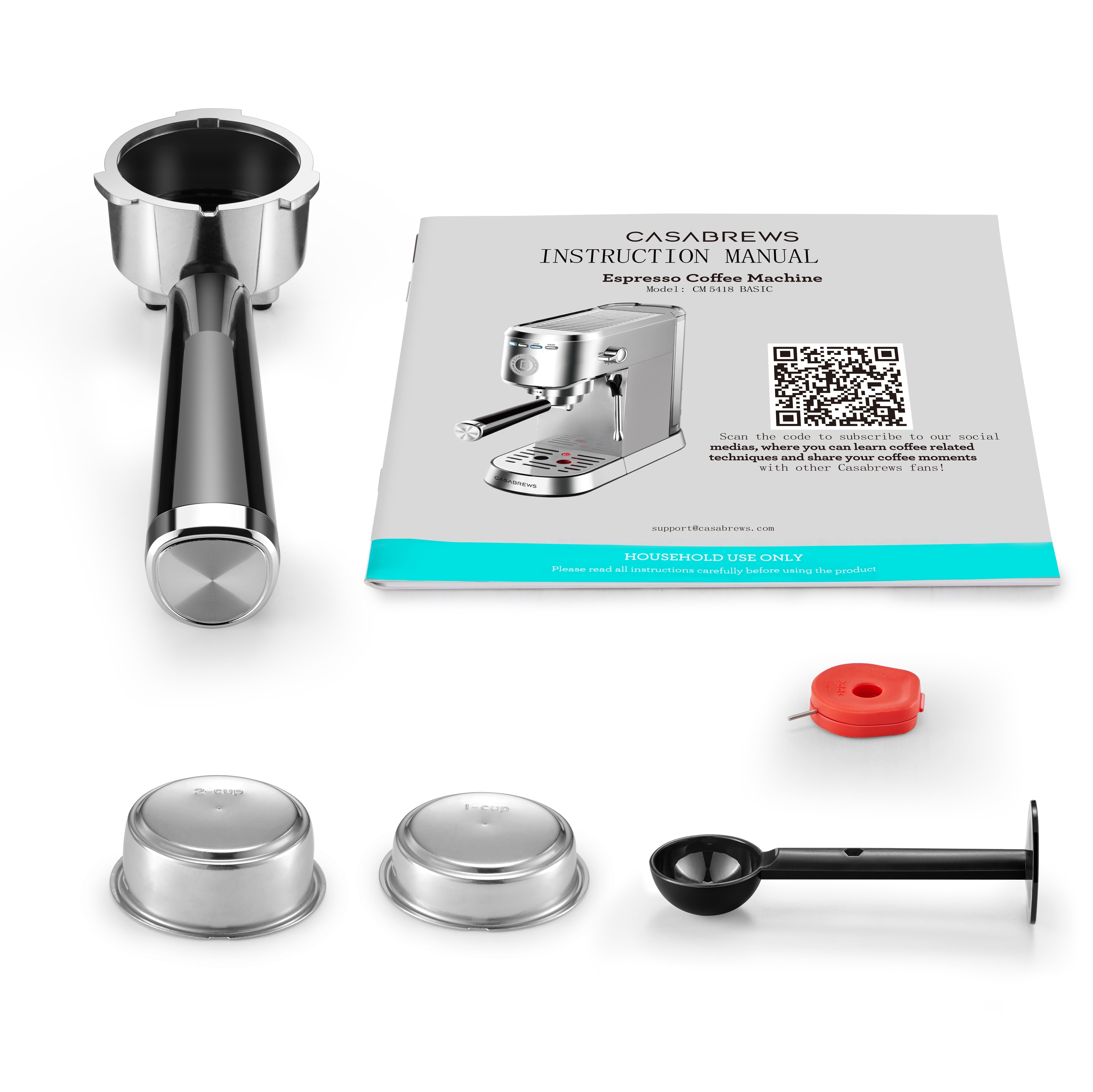 With clearly labeled buttons for power, single cup, double cup, and steam functions, making café-quality coffee at home has never been easier. Elevate your coffee experience and brew meaningful moments, one perfect cup at a time with the CASABREWS CM5418 Basic Espresso Machine.