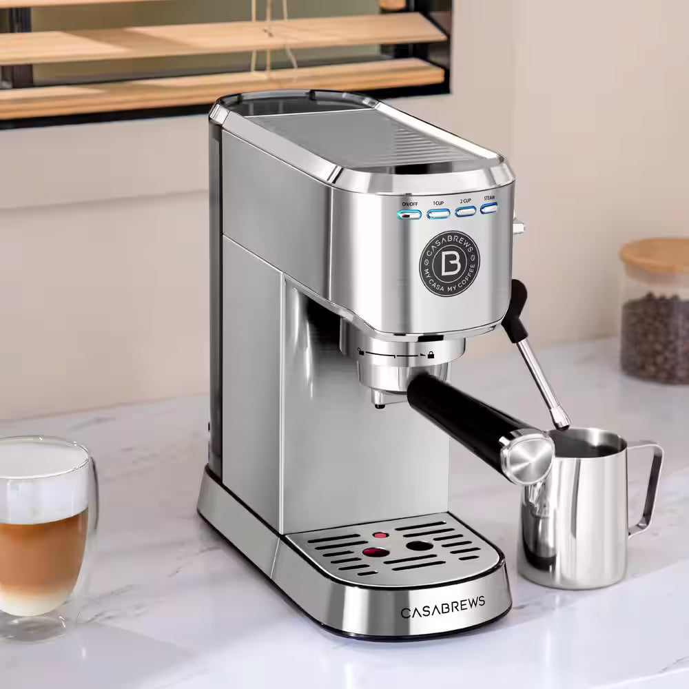 - Be your home barista: create your own delicious espresso coffee at home with the CASABREWS 5418 basic espresso machine, its sleek stainless steel design not only adds a touch of style to your kitchen but also ensures durability, whether you're looking for the perfect addition to your kitchen or a thoughtful gift for a loved one, this compact espresso machine is the ideal choice for home, office, or as a special present for any occasion