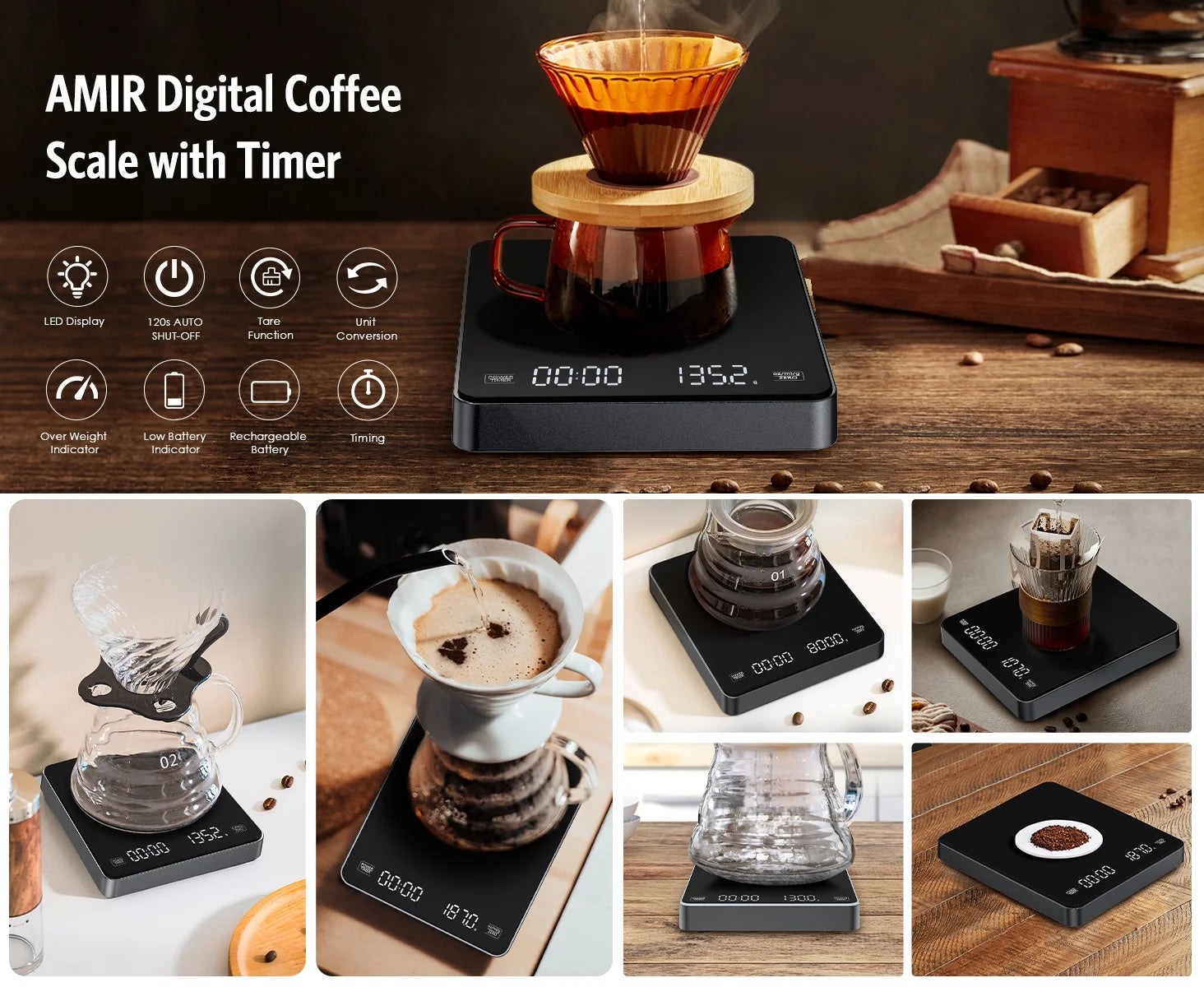 To brew a great cup of coffee need an accurate coffee scales, and the AMIR kitchen scales will meet all your expectations.