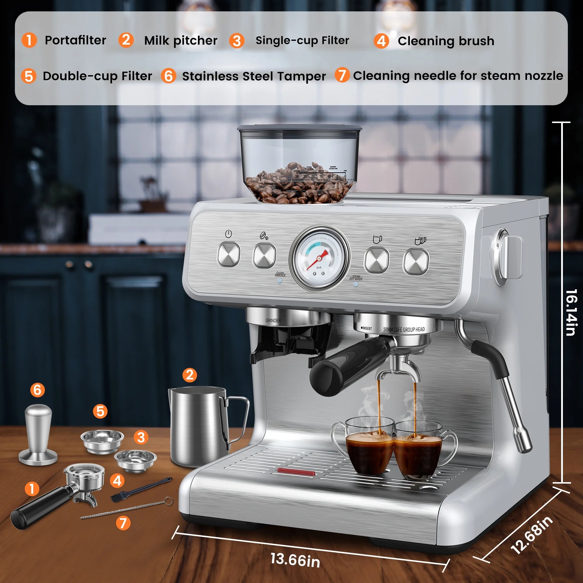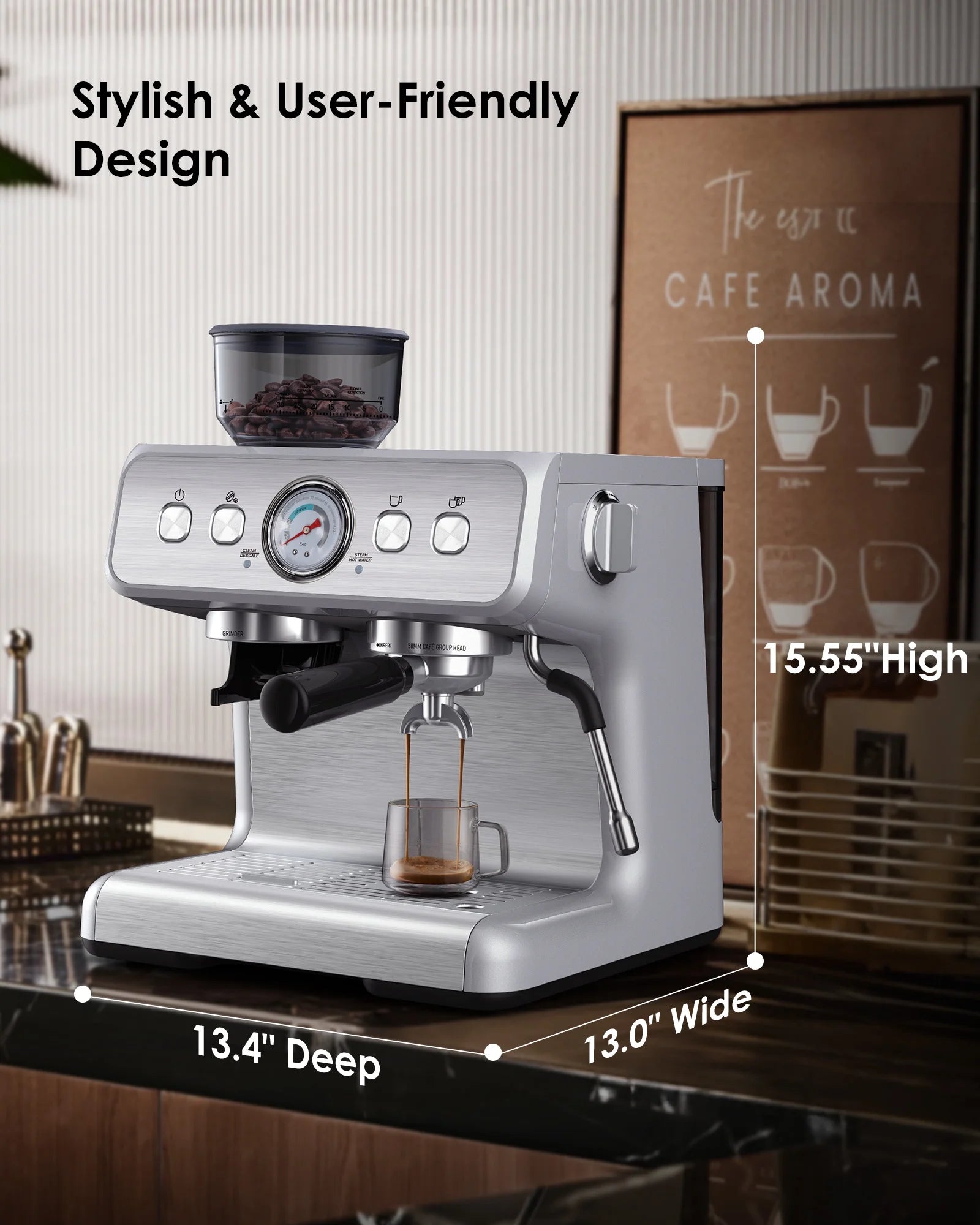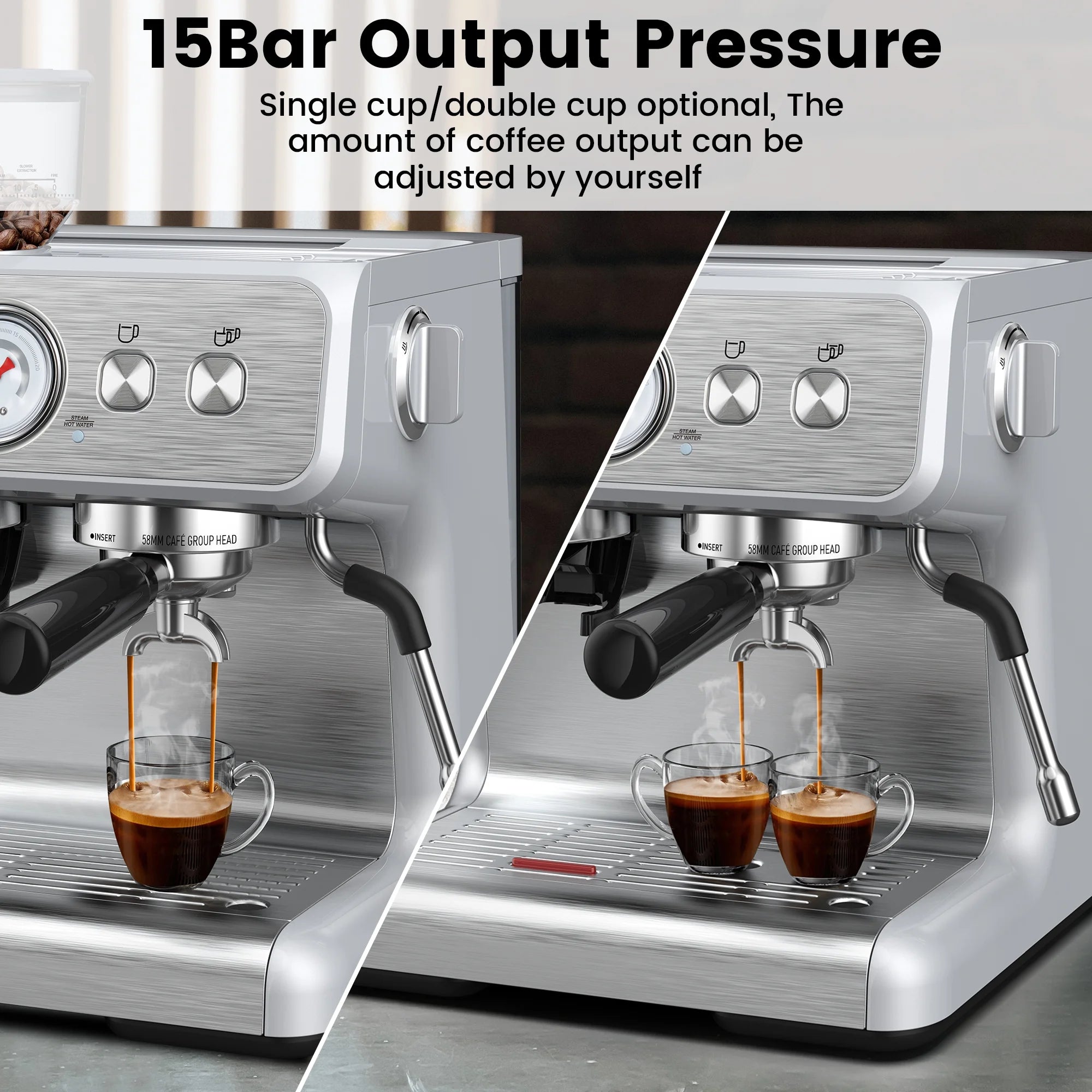 - Powerful 15-bar pump pressure ensures rich and dark espresso extraction