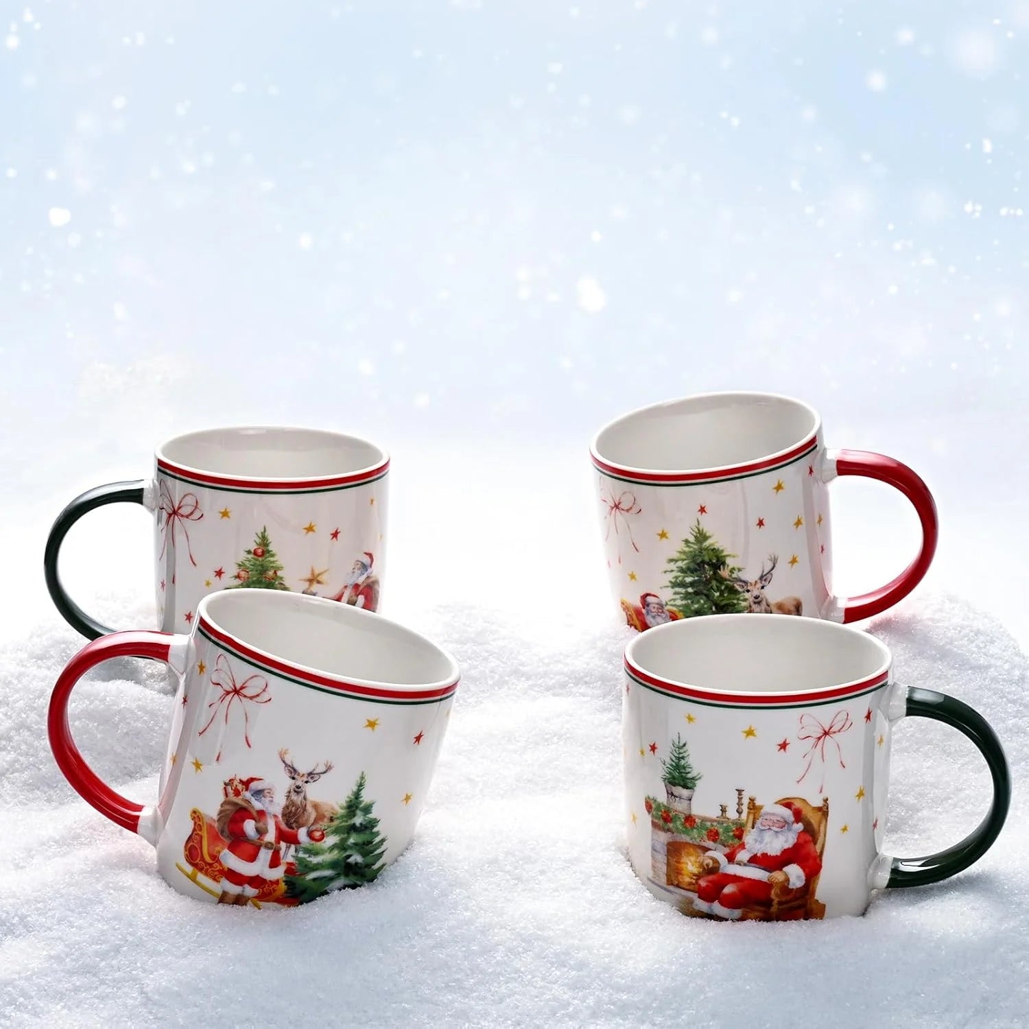 PRINTED ON BOTH SIDES: The festive Christmas patterns are vibrantly printed on both sides of the mugs, while the red and green handles add a touch of Christmas cheer.