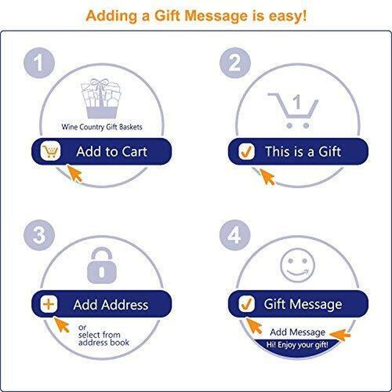 Spread some joy with this gourmet gift basket filled with a collection of sweet and savory Wine Country favorites. Sesame cranberry cookies, crackers, hummus, vanilla sea salt caramels, green and black olive tapenade, spicy honey crunch snack mix, Ahmad English tea, Walkers shortbread cookies, olives, soft nougat fruit and nut bites, cheddar cheese biscuits, vanilla fudge with sea salt, organic dried plums, a brownie and more.