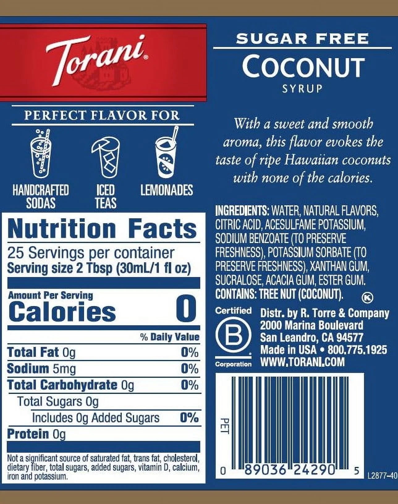Introducing the Indulge Guilt-Free: 4 Pack Sugar Free Coconut Flavoring Syrup – a must-have for anyone who loves to savor the sweet taste of coconut without the added sugar! Each 25.4 Fl oz (750 mL) bottle is meticulously handcrafted to deliver a luscious, creamy coconut flavor that transports you straight to a tropical paradise. Perfect for those who cherish gourmet flavors while maintaining a healthier lifestyle, this syrup is your ticket to indulging in delicious beverages without any guilt.