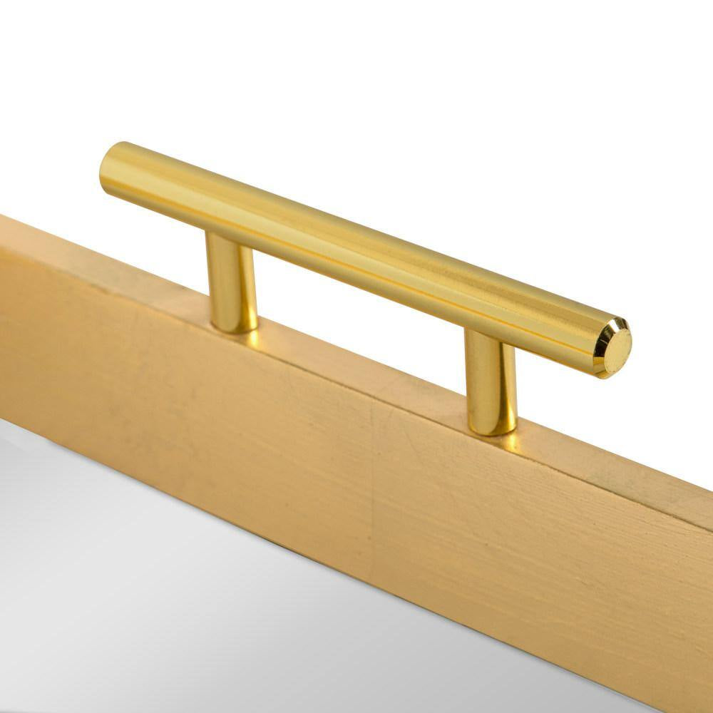 - Decorative, contemporary, mirror tray with polished metal handles will be an elegant accent in your home
