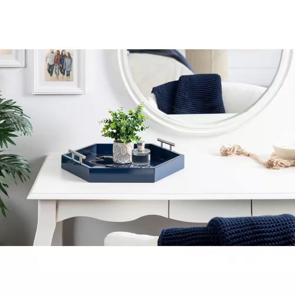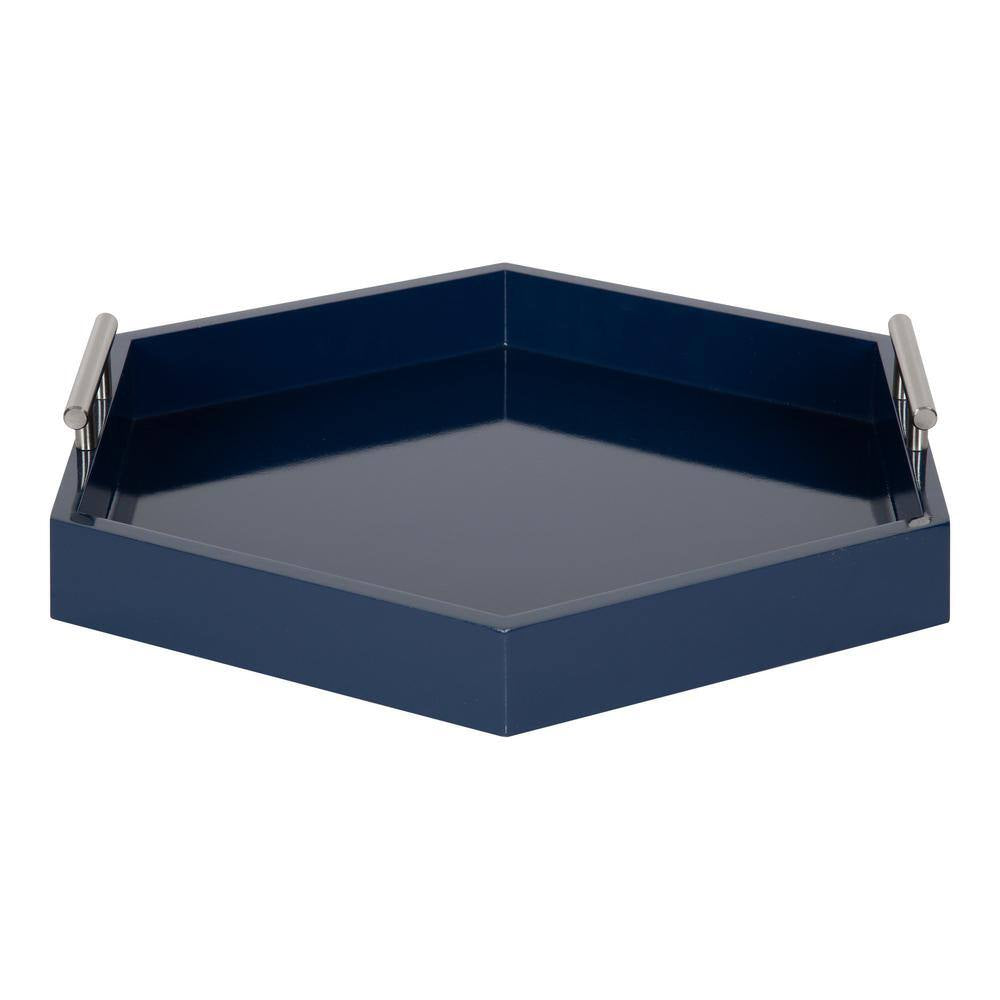 Bring glam style into your home with this hexagon-shaped Lipton tray with metal handles. It's fantastic for use as storage or display, showcasing anything from plants, photos, or keepsakes. The Lipton tray has plenty of functions to add style and convenience to your home. Place this charming tray on your entrance console table as a catch-all for keys and mail as you come and go. If you're renovating a home workspace, It's also spacious enough to hold documents or file folders on a desk. At your next get-together, you can use this lovely geometric tray on an ottoman to hold your beverages on coasters. Constructed with a glossy finish and polished metal handles, this tray is excellent for mixing drinks and acting as a bar tray too. The tray measures 18 in. wide, 18 in. deep, and stands 3.25 in. high, making it a visual statement for a variety of surfaces. Bring a chic and glamorous decorative accent into your home with this beautiful Lipton tray.