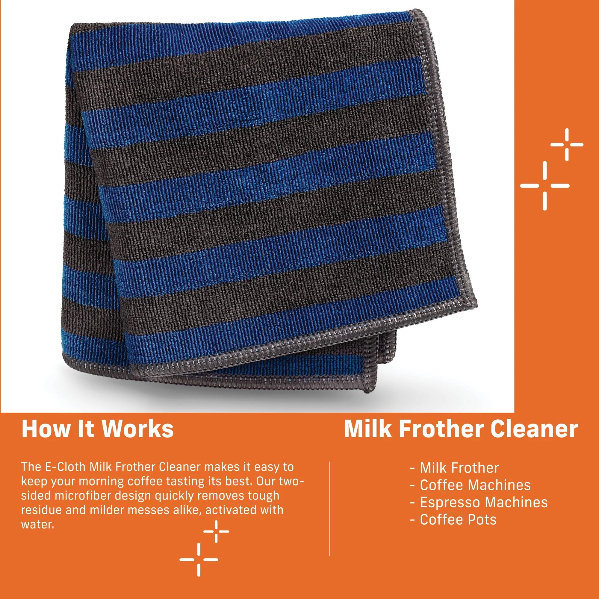 - This premium two-sided microfiber cloth makes it easy to keep your milk frother, coffee maker, and other countertop appliances clean and performing at their best, using just water.