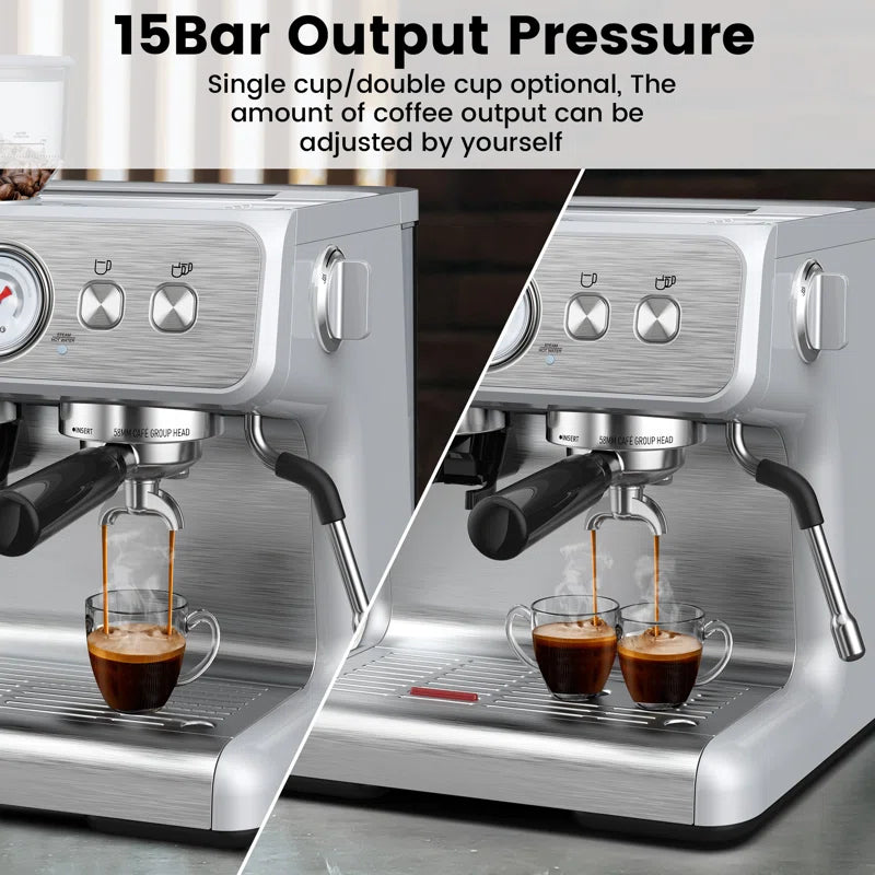 The machine offers flexibility with options for single or double cups and allows you to adjust the coffee dispensing amount according to your taste. With its sleek stainless steel design, this espresso machine not only enhances your coffee-making experience but also adds a touch of elegance to your countertop.