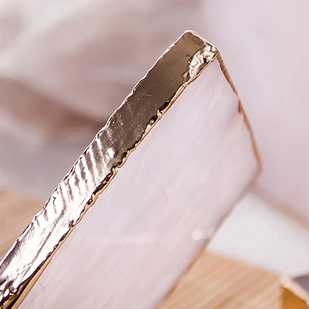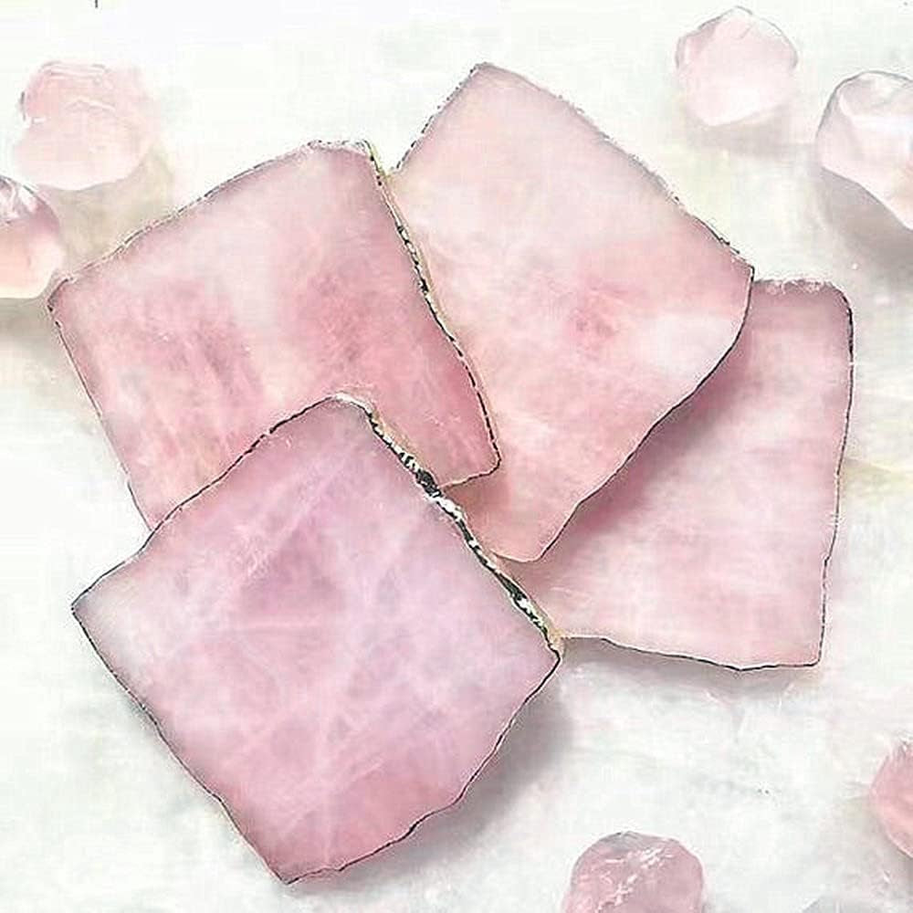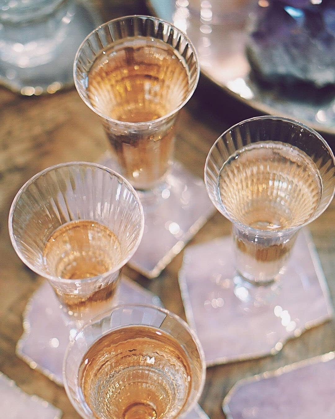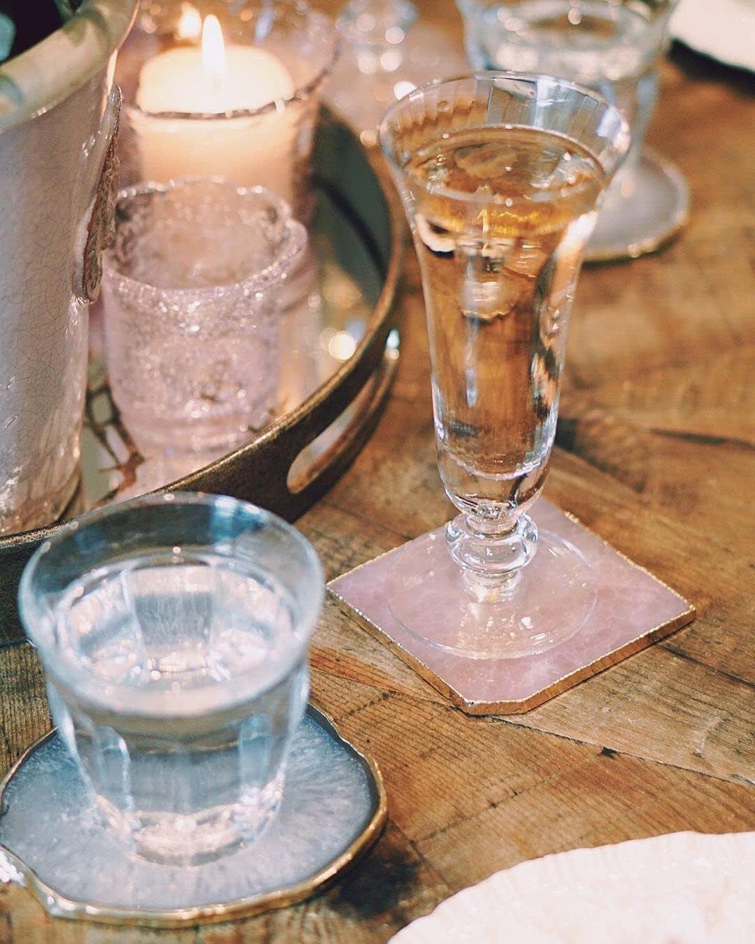 Pamper your self and your coffee with this set of four luxury rose quartz coasters! Made from 100% natural pink crystal and edged with dazzling gold, these glamorous mats add a touch of sparkle and style to any dinner table, cocktail hour, whiskey night, or coffee break. Your beverages deserve a little bling and a whole lot of elegance!