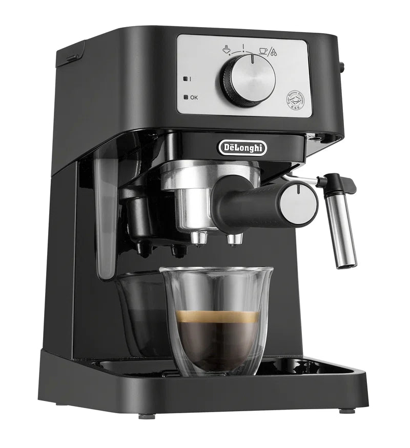 The Stilosa Manual Espresso Machine by De'Longhi is an elegantly designed espresso machine that elevates your espresso experience at home. This semi-automatic machine is crafted for those who appreciate the art of coffee-making, allowing you to create authentic specialty drinks such as lattes, cappuccinos, and rich espressos with ease.