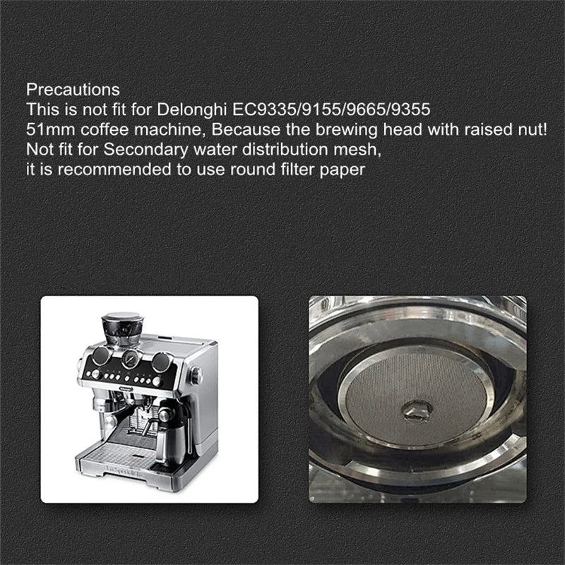 Why pick this filter? Regular coffee grounds tend to clog and leave a mess on your brewing head, but this ultra-thin filter keeps grounds neatly separated and your machine sparkling clean. How to choose? Just match the filter size to your espresso machine’s portafilter diameter. Compatible sizes include 51MM for Donlim, Petri, DERLLA, Bear, and more; 53.5MM for Breville BES870/875/878/880 and others; and 58.5MM for GEMILAI, ROCKET, Breville BES900/920/980, and many top brands. Comes in packs of 1, 2, or 3 espresso puck screens—perfect for your fancy espresso parties!